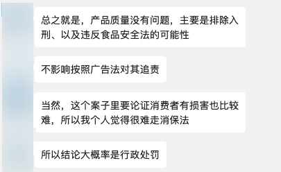 并且,正在他看来,除非大小杨哥或者三只羊曲播间,否则只是纯真宣传是品牌很难被界定为强调宣传,更别说虚假宣传了。但若是是“老字号”的说法,可能就有点强调,但具体的言论、宣传都得具体阐发,没法一概而论,最终还得看相关部分分析评判。