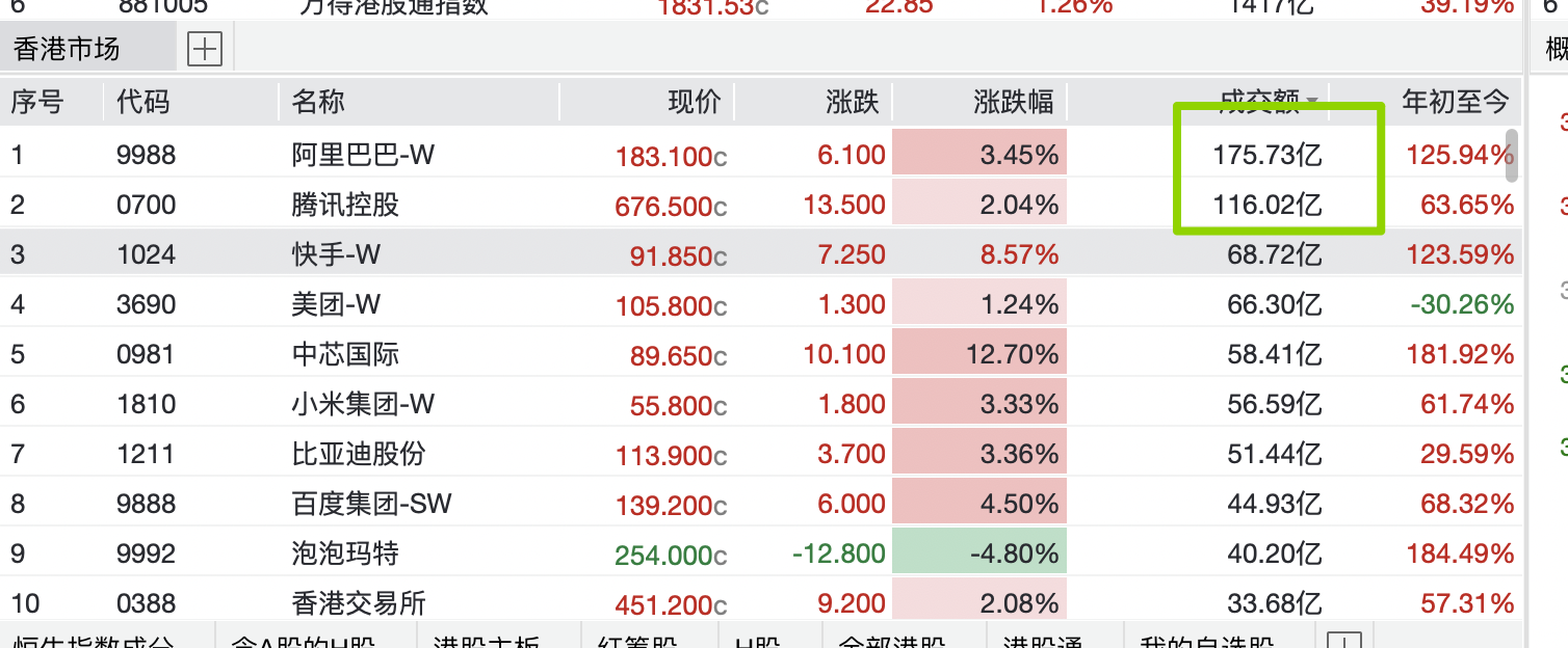 盘面上,半导体、电气设备、有色金属以及生物医药等行业领涨,地产、食物饮料板块领跌。个股方面,宁德时代(、紫金黄金国际(02259。HK)、华虹半导体(01347。HK)等多只股票,股价创上市以来新高,此中宁德时代收涨5。95%,报605。5港元。此外,多只抢手科技股涨幅亮眼,快手-W(01024。HK)涨8。57%,阿里巴巴-W(09988。HK)、腾讯控股(00700。HK)均涨超2%。